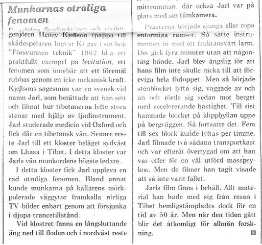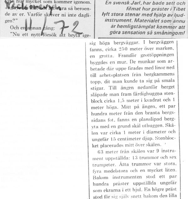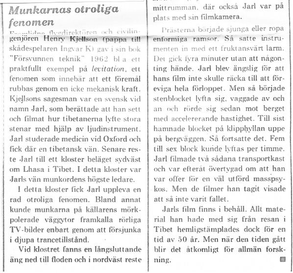 The following report is based on observations which were made only 20 years ago in Tibet. I have this report from civil engineer and flight manager, Henry Kjelson, a friend of mine. He later on included this report in his book, The Lost Techniques. This is his report: