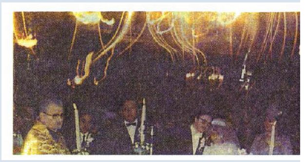 When the stone was in position the monk behind the small drum gave a signal to start the concert. The small drum had a very sharp sound, and could be heard even with the other instruments making a terrible din. All the monks were singing and chanting a prayer, slowly increasing the tempo of this unbelievable noise. During the first four minutes nothing happened, then as the speed of the drumming, and the noise, increased, the big stone block started to rock and sway, and suddenly it took off into the air with an increasing speed in the direction of the platform in front of the cave hole 250 meters high. After three minutes of ascent