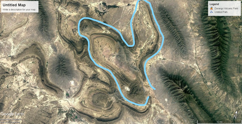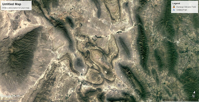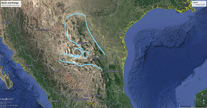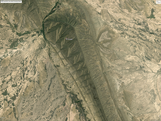 Taking another step back reveals this entire mountain region in Mexico is shaped by a turbulent shear zone in the wind. These mountains were formed by uni-polar winds, screaming from the south, and mixing into plasma storms along the shear zone with opposite polarity winds screaming the other direction. It is eerily similar to the turbulent shear zones adjacent to the Great Red Spot, creating kinked circulations that have a crab-claw shape. I call this the Mexican Kink.