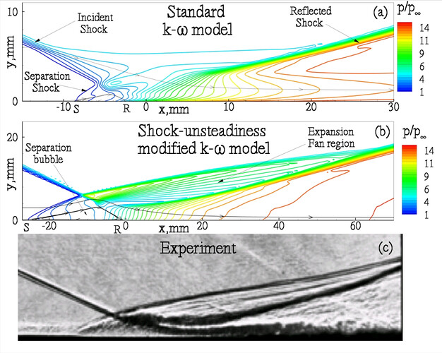 Four pressure ridges can be seen. Wind flow denoted by blue arrows, dark blue denotes supersonic speed.