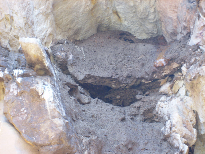 Second, note the plasma tornadoes that bridge the gap between the block and electrode. They are not in bright arc mode, but are filaments in glow mode. The plasma tornado currents are in the air gap, where the air has ionized to plasma. In the Arches, there was no air gap between the ionizing wet layer and the overburden, so the discharge was a barrier discharge coming from the ‘boiled mud’ layer. The currents flowed around the boiling, bubbling, foaming heat spikes to fuse and harden the less conductive overburden in it’s pattern of arches and pinnacles.