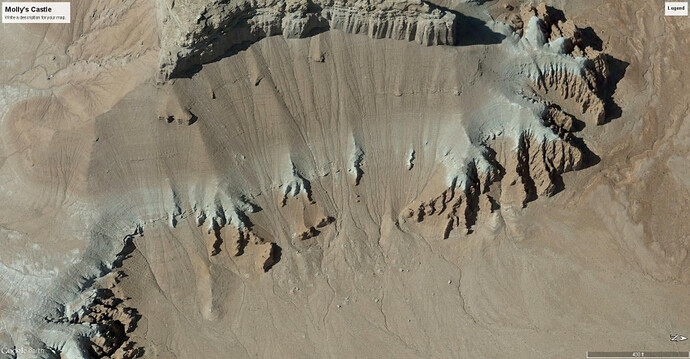 Each feature seems to be a shallow basin, or spring where water collects. Map resolution doesn’t allow better detail. These features are larger than the Arizona features. Many cover several acres.
