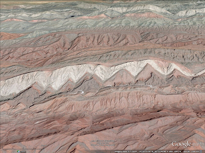 Much of the country of Uzbekistan is carpeted with similar features, as the following images from a small portion of eastern Uzbekistan show.