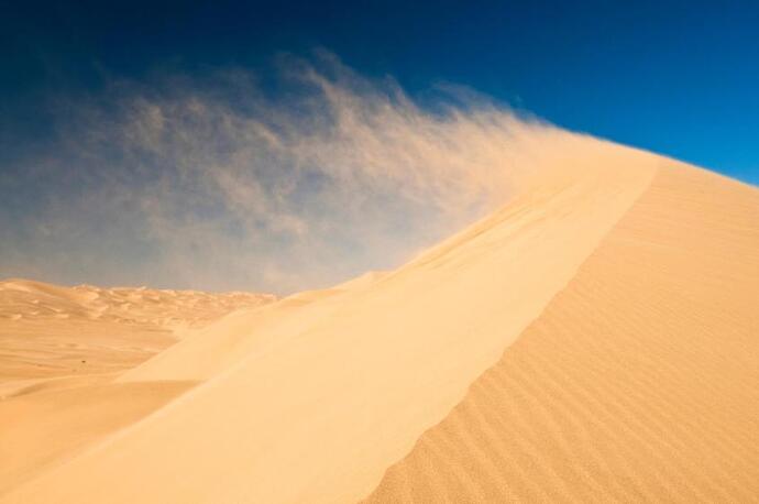 The windward side actually portrays the shape of the wind itself, as pressure waves undulate across movable sands and mold them.