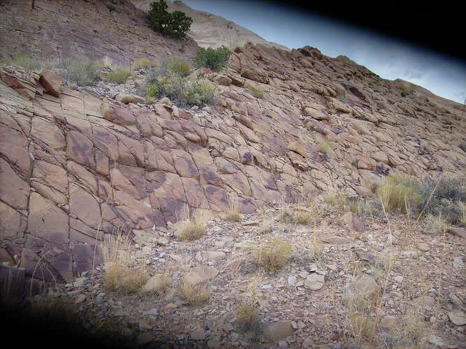 The last images above, taken at Comb Ridge monocline in northern Arizona, shows where fulgamites and dykes are exposed in the monocline. These protrusions created a shock wave in mach speed ambient winds that formed a linear standing wave, against which the monocline was formed like a dune, as blowing dust accumulated. There are several monoclines on the Colorado Plateau that exhibit the same, or similar features.