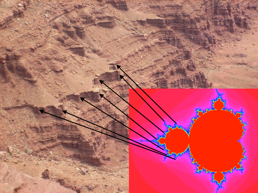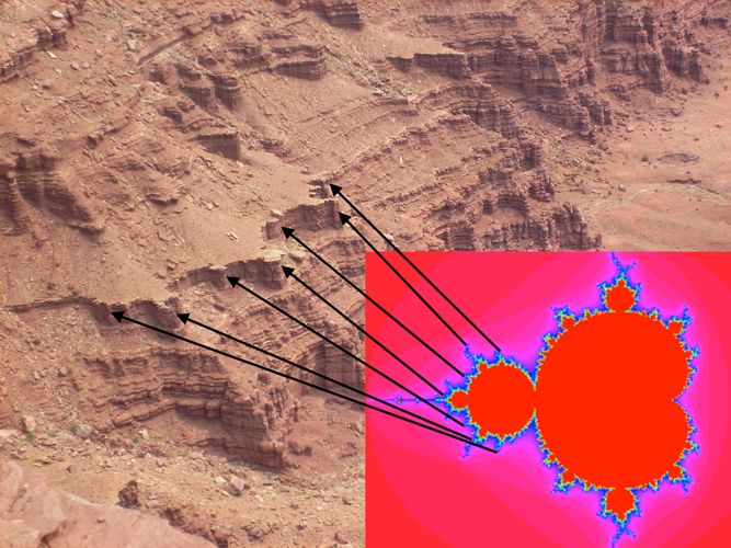 There are fractal repetitions in the up and down-drafts. The most striking example lies smack between the updraft dome and downdraft crater of the San Rafael coronal storm loop.