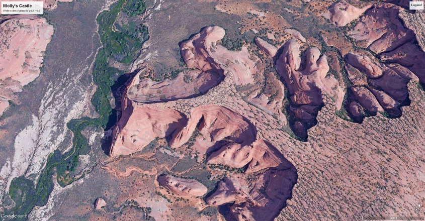 What amazes is the number of them clustered in particular areas. They rarely overlap, spaced fairly even, but randomly apart. There are hundreds of thousands, if not millions of them scarring the land just south of Comb Ridge.