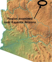 Blue dots and lines denote fulgurites and dykes in Comb Ridge monocline, Arizona