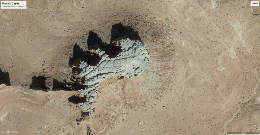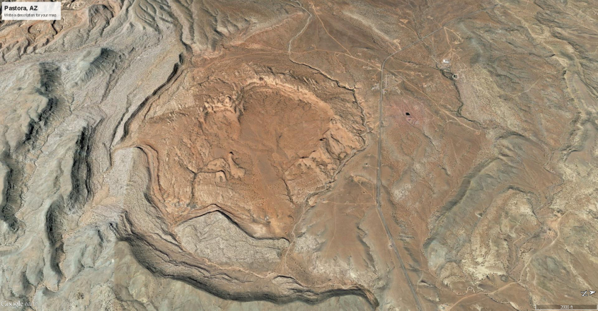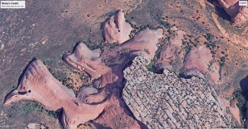Mt Hillers, Utah – Hard rock buttresses form a nearly perfect circle around the base from in-flowing supersonic winds.