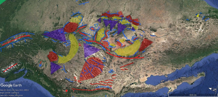 If you study Earth’s surface and look at details in it’s form, there are obvious patterns. Arcing patterns of mountain ranges and island chains, strange swirls and looping cracks on the ocean floor, and on close inspection there is harmony in the shape of mountains and other terrain. Sometimes it’s geometric, with triangles, arcs and star patterns, but usually it’s more fluid, like a crazy paisley.