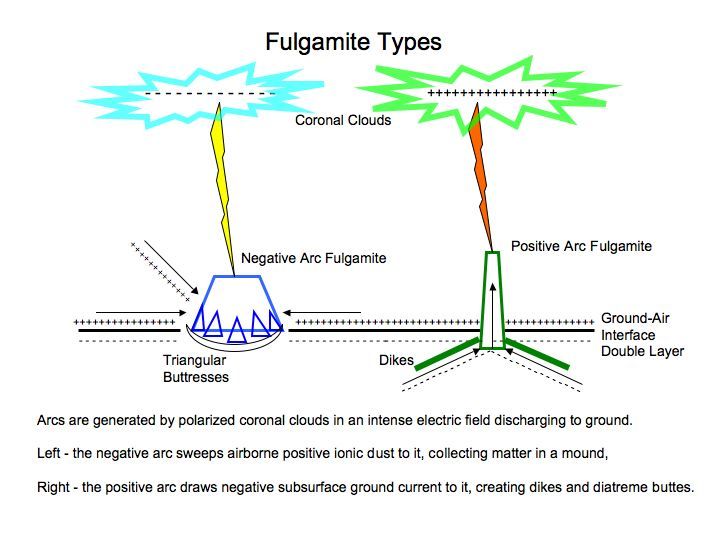 Negative arc fulgamites create their own winds, bringing dust to pile against them from all directions, and if powerful enough, form standing shock waves that generate buttresses in a ring around the base.