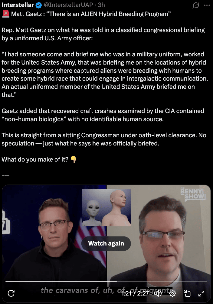 Non-human beings being forced to breed with humans: https://x.com/InterstellarUAP/status/2039041136254243119