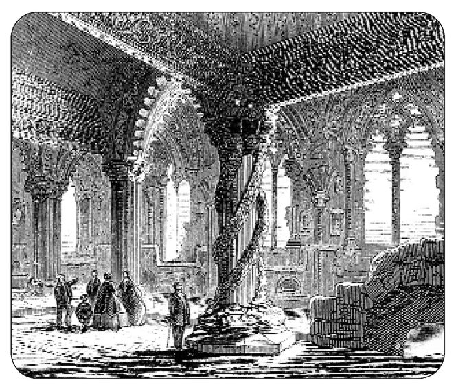 Rosslyn Chapel, near Edinburgh. The Scottish roots of Freemasonry were deliberately covered up in the eighteenth century because they had become entangled with the Stuart dynasty, supporting its claims to the throne. Rosslyn Chapel, built in the fifteenth century by William Sinclair, the first Earl of Caithness, incorporated replicas of the twin pillars of Solomon’s Temple - Jakim and Boaz - in a way that anticipated every Masonic lodge in the world. A carving on the lower frame of the window in the south-west corner of the chapel seems to be of a Freemasonic First Degree. Scottish lodges of some description undoubtedly existed at least a hundred years before the recorded English ones.