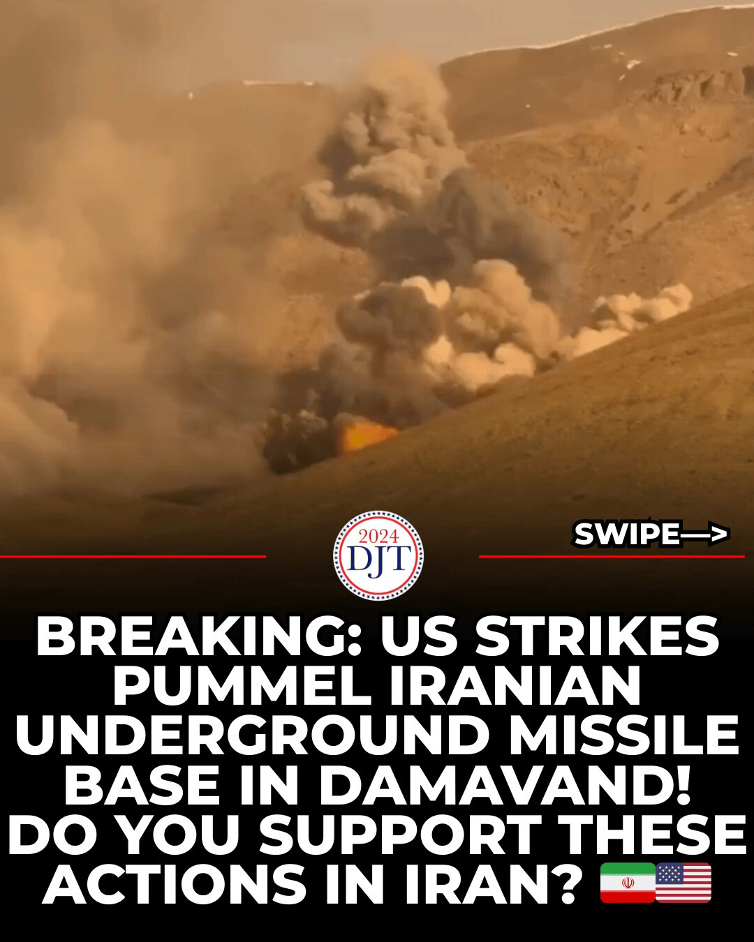 President Trump has unleashed hell on Iran’s underground missile empire, and the results are devastating for the mullahs. U.S. forces just pummeled a major hardened underground missile base in the Damavand region—deep inside Iranian territory—with precision strikes that turned fortified tunnels, launch facilities, and stockpiles into smoking craters. The footage shows massive plumes of smoke and fire rising from the mountainside, proof that America’s military dominance can reach anywhere, anytime, and hit exactly where it hurts.